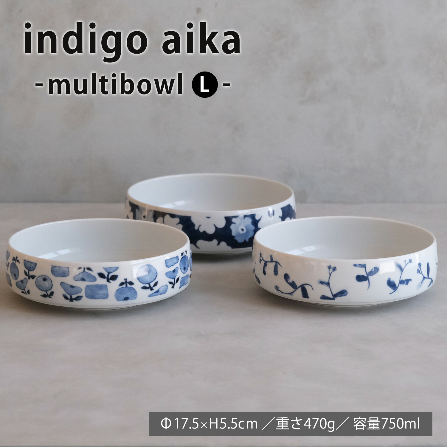 3,980円(税込)以上ご購入で送料無料波佐見焼 indigoaika マルチボウルL ボウル ブルー インディゴ ブーケ 灯火 ガーベ スタッキング シリーズ 重なり お皿 hasami 西海陶器 送料無料 電子レンジ可能 食洗機可能 ギフト 磁器