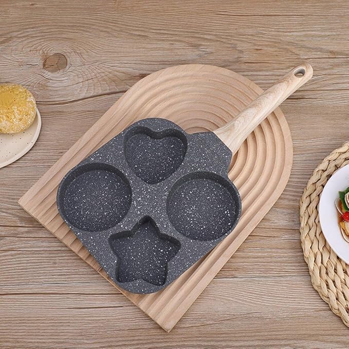 4つ穴オムレツパン 小型フライパンフライパン 小さなフライパン ミニオムレツパン 4個仕切り付き 卵用ハート型星型 ステーキ用バーガーポット 朝食用野菜用 家庭用 業務用 19*19*2cm