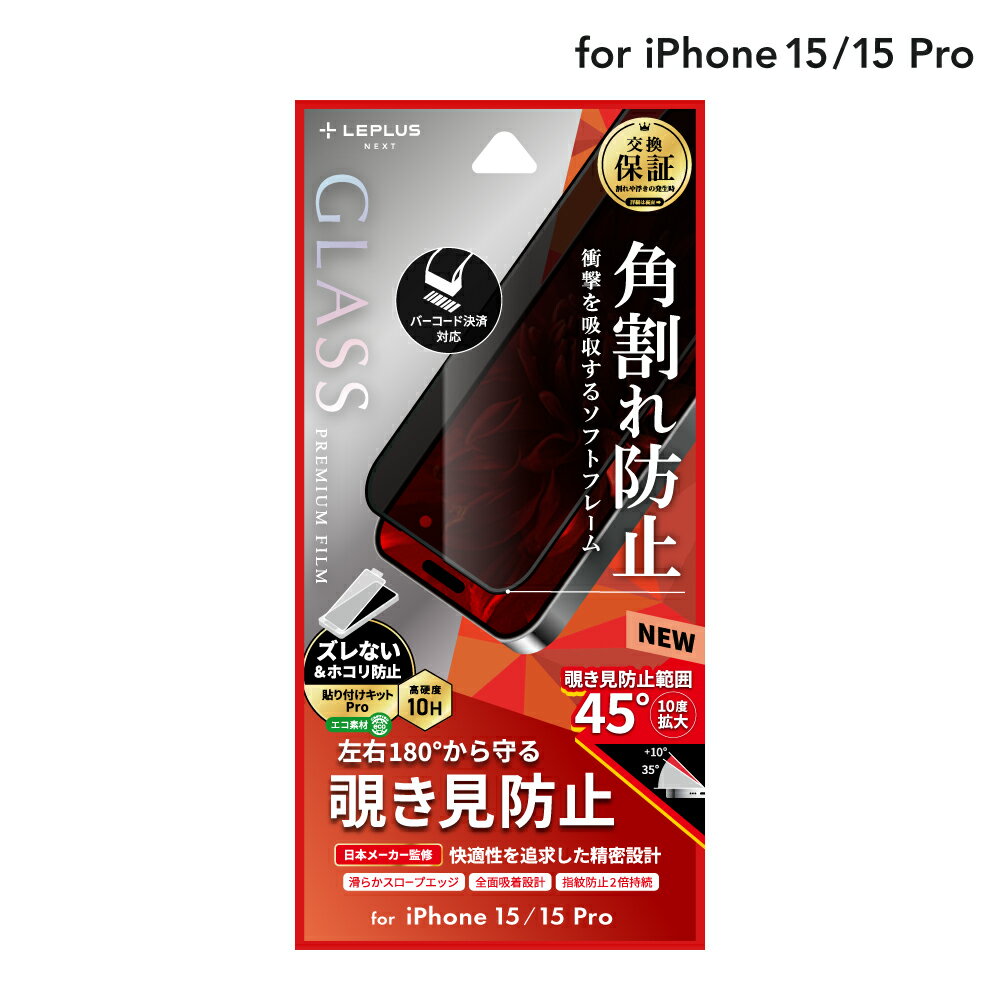 スマートフォン アイフォン アクセサリー アイホン 画面保護 ガラスフィルム 保護フィルム 耐衝撃 iPhone iPhone15 iPhone15Pro 第2世代 第3世代 送料無料【メール便 送料無料】 LEPLUS NEXT iPhone 15/iPhone 15 Pro ガラスフィルム 「GLASS PREMIUM FILM」 全面保護 ソフトフレーム 覗き見防止180° クリア 強化ガラス LN-IM23FGSN