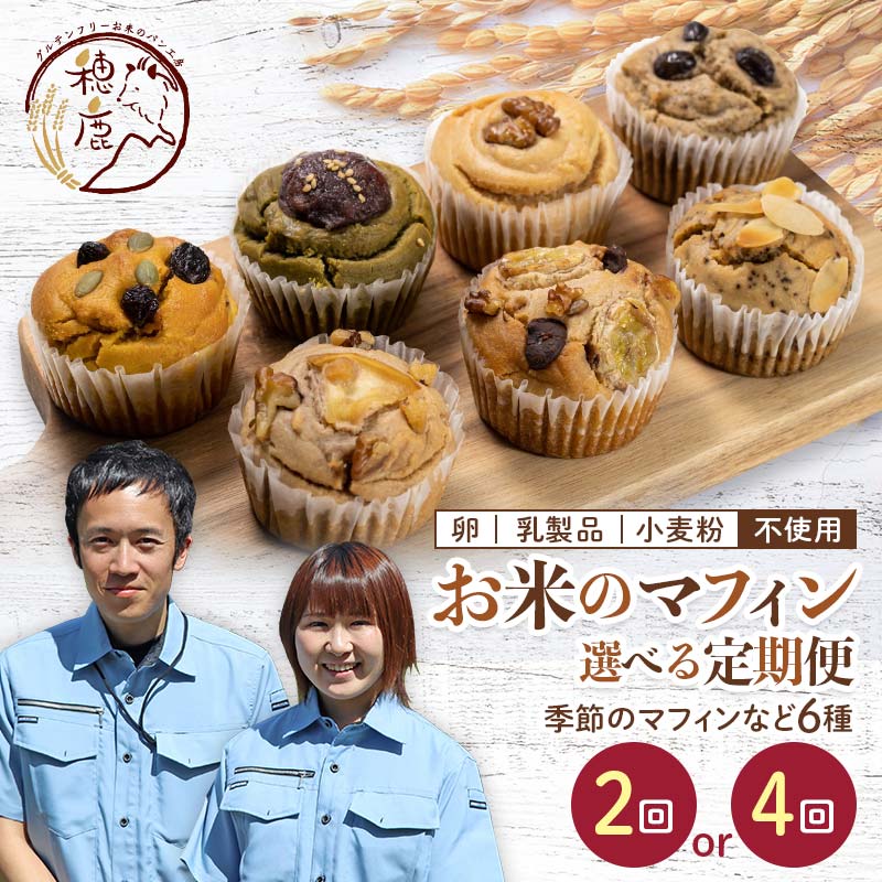 自家製の農薬・肥料不使用、天日干しのお米を使用。乳製品未使用 卵不使用 大豆たんぱく質が豊富!お子様のおやつに!素材の味を生かして優しい甘さ【ふるさと納税】 <季節の定期便>グルテンフリー お米のマフィン 米粉のおやつ F21T-198var