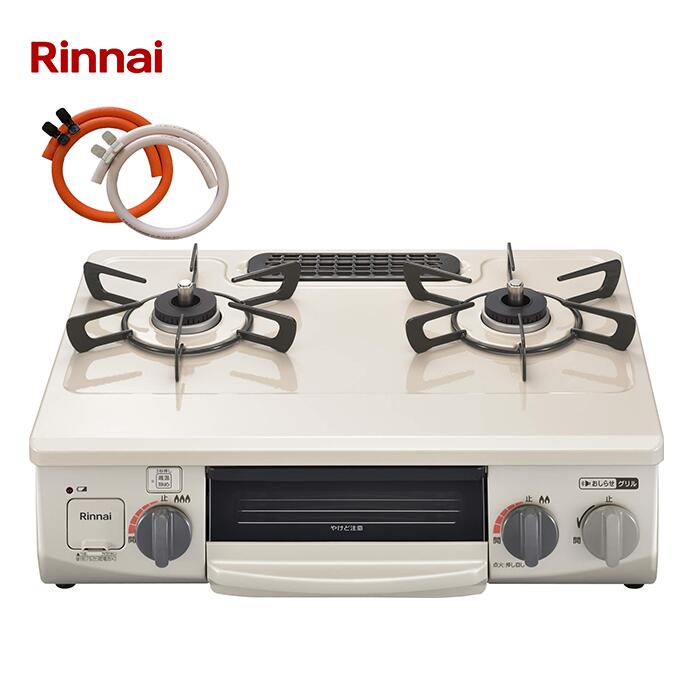 Rinnai テーブルコンロ ワンピーストップリンナイ 56cm 2口ガスコンロ RT34NJH7SA-C ガステーブル コンパクト クリームベージュ 右強火 左強火 都市ガス プロパン クリスタルコートトッププレート ゴムホース付き
