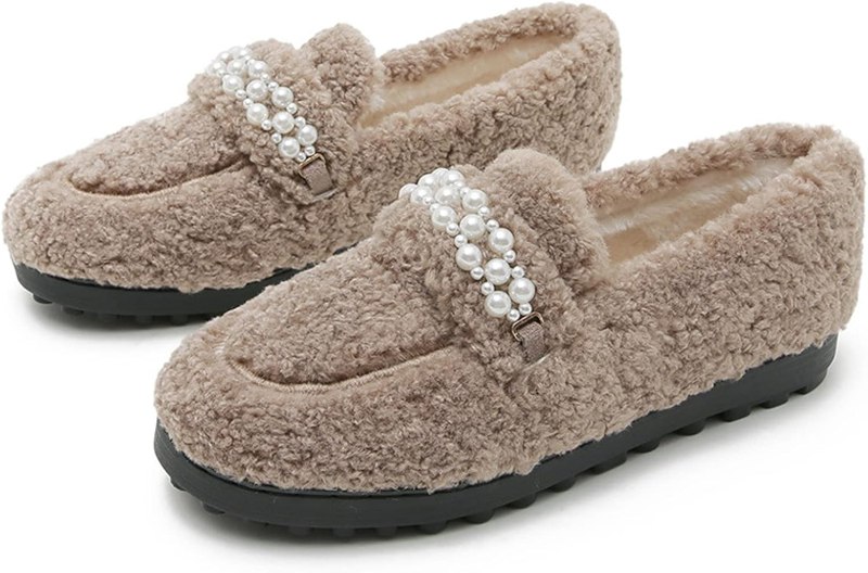 モカシンシューズ もこもこ 防寒 ふわふわ 暖かい ローファー パンプス 冬用 滑り止め あったか レディース 外履き カジュアル ファー スリッポン 可愛い ビジュー付き おしゃれ フラットシューズ