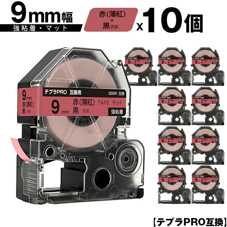 送料無料 テープ幅 9mm マットラベル 黒文字 KING JIM用 互換テープカートリッジ 1年安心保証 新学期 入園 入学 幼稚園 小学校 中学校 名前シール 備品 収納 経費削減 強粘訳あり【艶あり 手書き不可】 キングジム用 テプラ PRO SB9R 9mm 赤 薄紅テープ 黒文字 強粘着 マット 10個セット 互換テープ テプラPRO用 テープカートリッジ メール便 送料無料 SR-R7900P SR-R980 SR970 SR950 SR930 SR920 SR910 SR900 SR828 SR818 SR750 SR5900P SR3900P