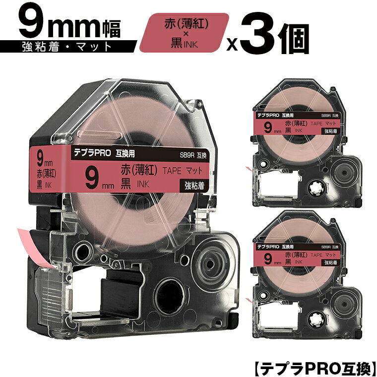 送料無料 テープ幅 9mm マットラベル 黒文字 KING JIM用 互換テープカートリッジ 1年安心保証 新学期 入園 入学 幼稚園 小学校 中学校 名前シール 備品 収納 経費削減 強粘訳あり【艶あり 手書き不可】 キングジム用 テプラ PRO SB9R 9mm 赤 薄紅テープ 黒文字 強粘着 マット 3個セット 互換テープ テプラPRO用 テープカートリッジ メール便 送料無料 SR-R7900P SR-R980 SR970 SR950 SR930 SR920 SR910 SR900 SR828 SR818 SR750 SR5900P SR3900P