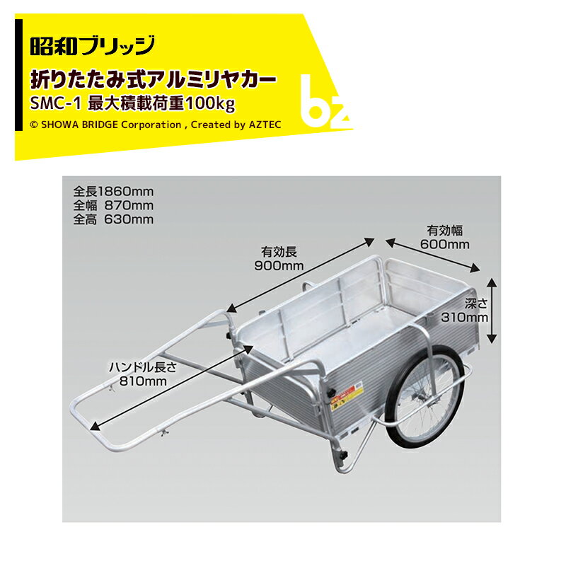 あらゆる分野で活躍する昭和ブリッジのアルミ製品【ポイント5倍】【直送品】 昭和ブリッジ オールアルミ製折りたたみ式リヤカー SMC-2 【大型】