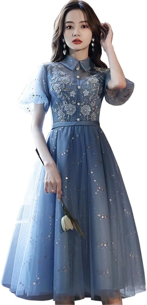 レディース イブニングドレス ドレス パーティードレス ワンピース ミドル丈ドレス カクテルドレス エレガント フォーマル 花柄 刺繍 立ち襟 星柄 演奏会 パーティー 卒業式 発表会 デート