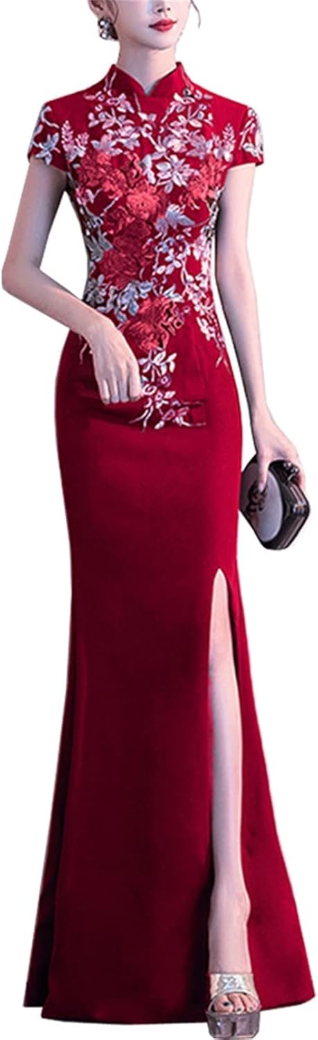 レディース ドレス マーメイドドレス チャイナドレス ロングドレス 結婚式ドレス 花嫁ドレス イブニングドレス ワンピース エレガント フォーマル 花柄刺繍 ファッション サイドスリット 結婚式 披露