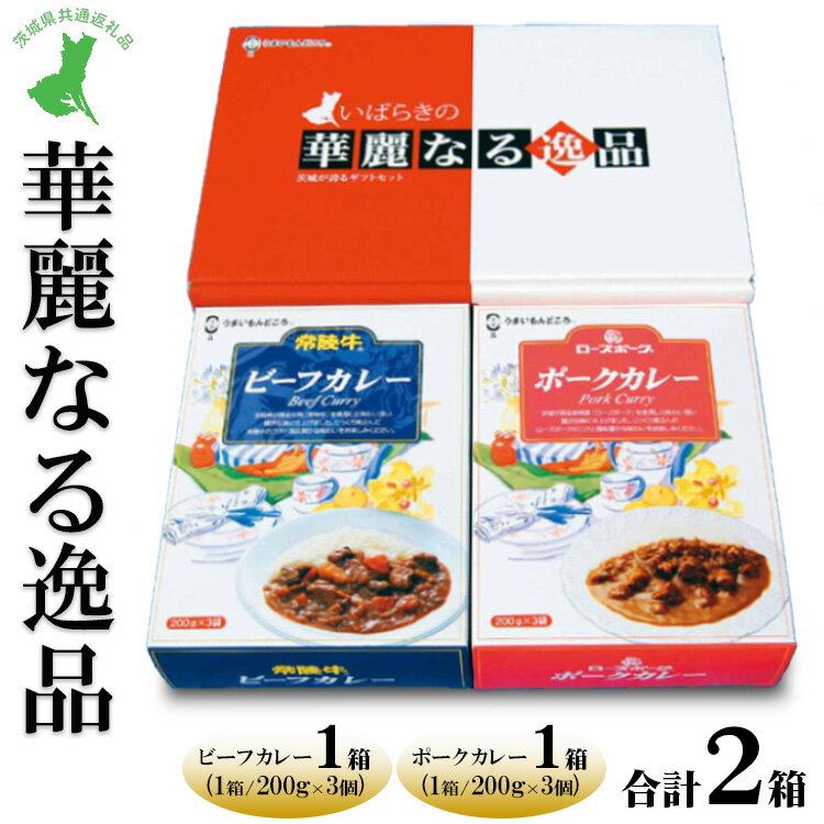 茨城県自慢の『常陸牛』と『ローズポーク』を使用したビーフカレーとポークカレーの詰め合わせセットです!「華麗なる逸品」と呼ばれるに納得の味をお届けします!レトルト 防災 備蓄【ふるさと納税】【茨城県共通返礼品 常陸牛 ローズポーク 古河市製造】華麗なる逸品(ビーフ、ポーク) 各種1箱(200g×3個)×2箱|レトルト 防災 備蓄 非常食 保存食 キャンプ アウトドア※離島への配送不可