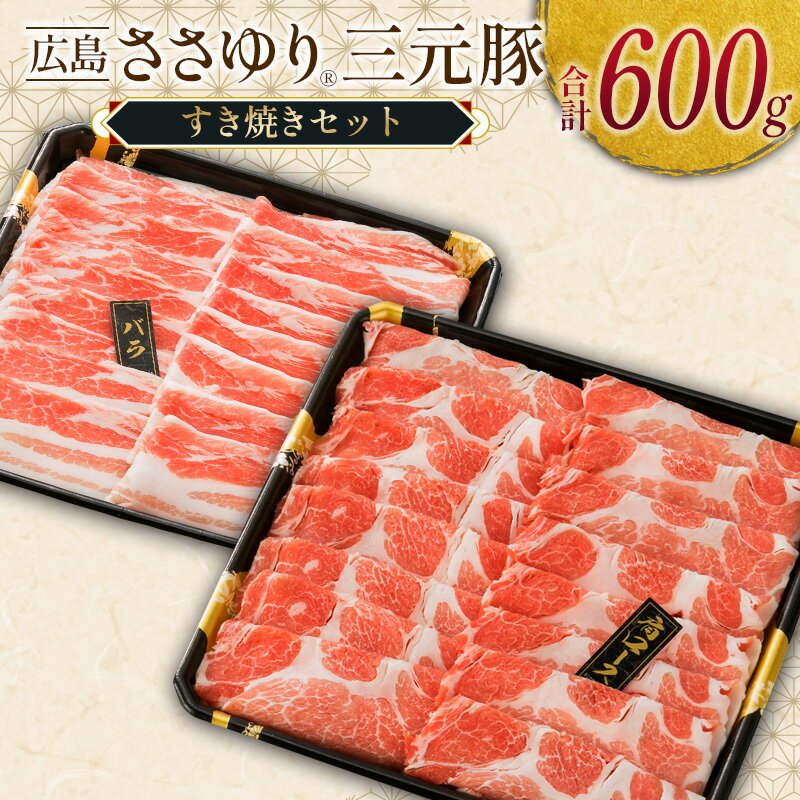 豚肉 ポーク 国産 肩ロース バラ 送料無料 お取り寄せ 広島県産応援登録認定 ブランド豚 福留ハム 料理 鍋 おすすめ オススメ にく【ふるさと納税】≪12月下旬発送≫ 豚肉 三元豚 すき焼きセット ささゆりファームの広島ささゆり(R)三元豚(合計600g)