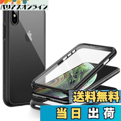 【送料無料】JEDirect iPhone XS と iPhone X (5.8インチ専用) ケース 液晶保護フィルム内蔵 傷つけ防止 フルボディ 360°全面 保護カバー クリアバック (ブラック)