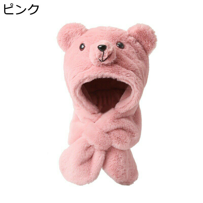 3点一体マフラー レディース用 一体型 耳付きスカーフ 防寒 ウォーム ハット くま耳 アニマル帽子 3in1 小顔効果 萌え萌え かわいい 厚い 冬物 もこもこ ふわふわ シンプル 多機能 外出 通勤通学
