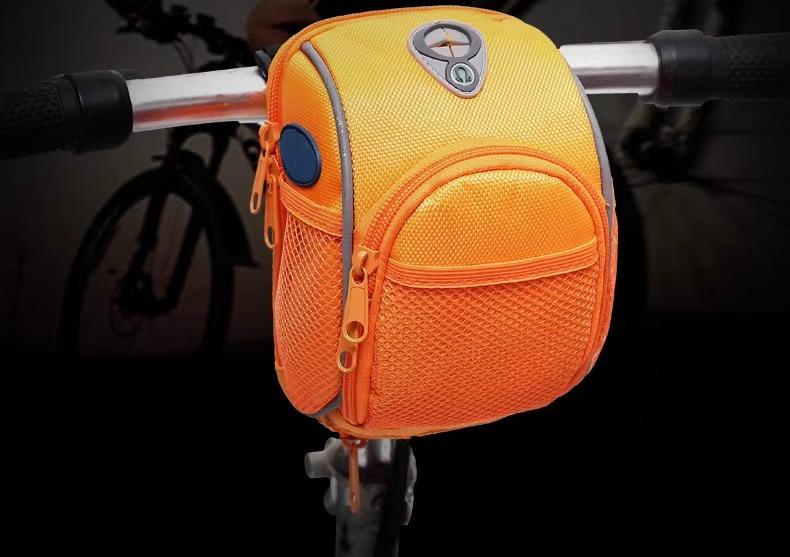 自転車 フロントバッグ ハンドル ハンギング 収納 大容量 クロスバイク アクセサリー 取り付け 簡単 反射板付き メッシュ オレンジ 黒 赤