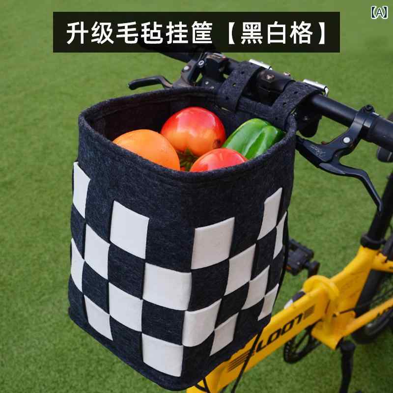 自転車 フロントバッグ かわいい チェック柄 フェルトバスケット 収納 大容量 取り付け 簡単 通勤 通学 買い物 2way トートバッグ 黒 茶 白