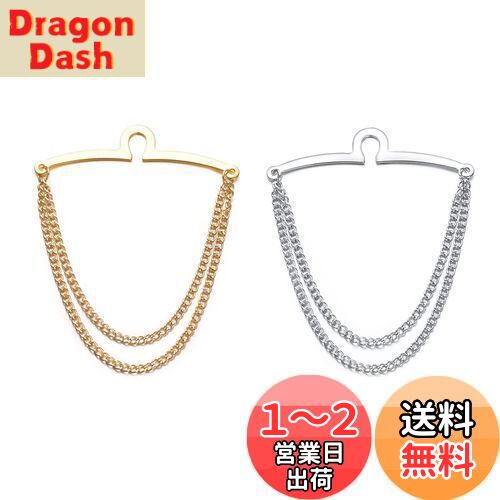 【送料無料】RunootPR ネクタイピン メンズ 2本セット ネクタイピン鎖 シルバー ゴールド ビジネス ネクタイ ピン 結婚式 真鍮製 メンズ プレゼント