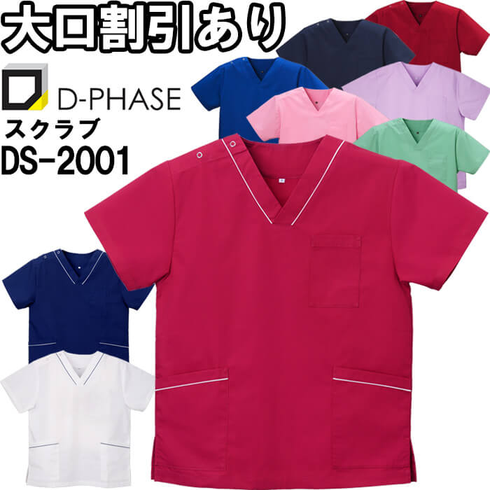 まとめ買いで大口割引あり 良品でも片道送料無料で返品交換OK 法人向けサービス お見積り無料 納品書・請求書・領収書発行OK 掛売OK サンプル貸出ありディーフェイズ 男女兼用スクラブ DS-2001 SS-3L 半袖 動きやすい 医師 看護師 ナース 介護士 医療用 手術衣 オペ着 ユニセックス メンズ レディース