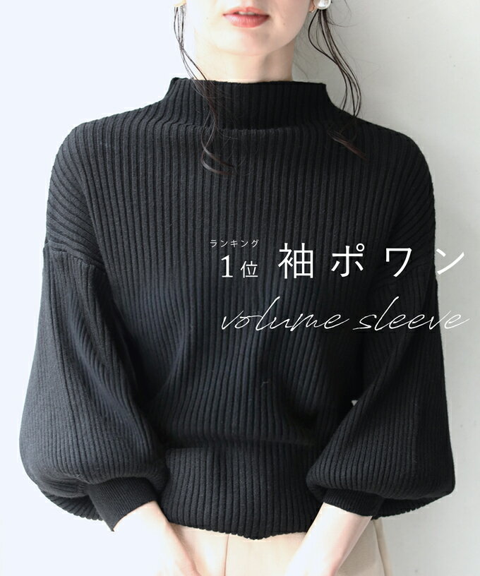 手洗い可能 もちもち リブニット カラーニット ゆったり 華奢見え 着痩せ ボトルネック 小顔効果 ベーシック オフィス 通勤 カジュアル お洒落 30代 40代 50代 レディースファッションぽわん袖 ニット【2990円クーポン利用で】[半額] リブニット レディース ボリューム袖 長袖 五分袖 大人可愛い バルーンスリーブ オフネック ボリュームスリーブ 二の腕カバー 体型カバー トップス バルーン袖 袖ポワン 袖ぽわん M L 洗えるニット 201041