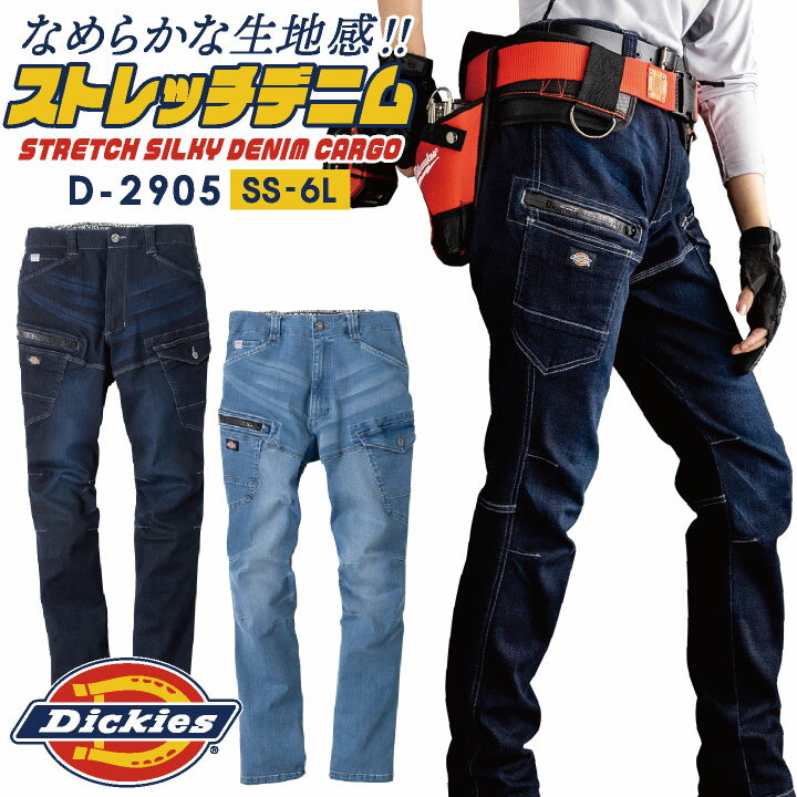 D2905 Dickies ストレッチシルキーデニムカーゴパンツ 年間 おすすめ 工事現場 建設業 農作業 釣り アウトドア インディゴブルー 大きいサイズ SS S M L LL 3L 4L 5L 6Lディッキーズ ストレッチ デニム カーゴパンツ 春夏 秋冬 ワークパンツ ズボン メンズ レディース 仕事服 作業着 おしゃれ カジュアル Dickies コーコス cc-d2905