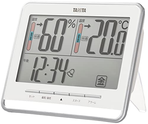 タニタ 時計 デジタル 大画面 ホワイト 温度 湿度 快適レベル 表示 カレンダー アラーム スヌーズ 機能 置き時計 掛け時計 両用 送料 無料