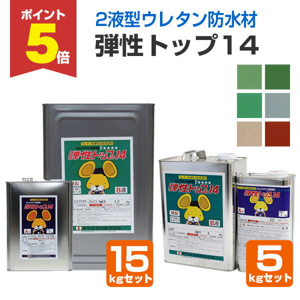 ウレタン防水材トップコートの塗り替え・美装に!カラーウレタン塗膜防水材トップコート/上塗り【期間限定P5倍】 【ウレタン防水材】 弾性トップ14 5kgセット <6色> 2液型アクリルウレタントップコート (フローン防水材の保護仕上げ・トップコート) 東日本塗料