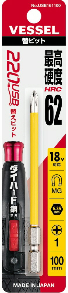 【メール便対応可】220USB電ドラボール用【作業工具】VESSEL(ベッセル)電ドラボール 替ビット サイズ +1×φ4.5×100 No.USB161100【523】