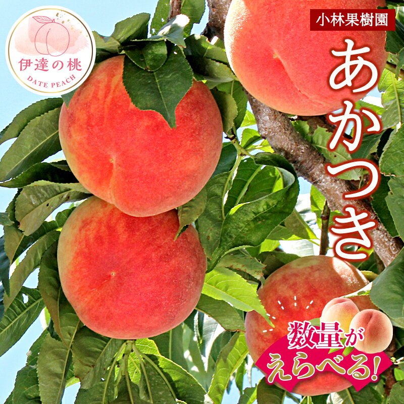 ※返礼品についてなるべく早めの発送を心がけておりますが、発送までにお時間をいただく場合がございます。 ※配送日時指定のご希望や事前連絡等の対応はいたしかねますので予めご了承の程宜しくお願い致します。 ※返礼品の送付は、福島県伊達市外にお住まいの方に限らせていただきます。 製品仕様 名称桃 内容量あかつき ※容量をお選びいただけます ・約3kg (9~12玉) ・約5kg (14~20玉) ※収穫状況により発送時期が前後するため、前もって発送日を確定しにくい状況について何卒ご理解いただければ幸いです。 ※沖縄・離島へのお届けはできかねます。 ※桃はとてもデリケートな果物です。取扱いには十分ご注意ください。 賞味期限出荷日を入れて4日間 配送方法常温 アレルギーもも 発送時期2026年7月下旬~2026年8月上旬※発送時期はあくまでも目安です。※季節商品であるため、収穫状況により発送時期が前後する場合がございますのであらかじめご了承ください。 商品説明 ■小林果樹園“あかつき” 小林果樹園は伊達市で二代続く桃農家。 伊達市梁川地区で早くから果樹生産に取り組まれた農家さんです。 <あかつきとは> 福島県を代表する桃の1つ「あかつき」 7月下旬からお盆まで福島県を盛り上げます。 はじめは固いですが、追熟させることで、ある程度柔らかくなり食べごろを迎えます。 小林果樹園でも大人気の品種です! ◆「伊達の桃」の特設WEBサイト「一桃一会(いちももいちえ)」の開設について 伊達市では、ふるさと納税の主力返礼品である「桃」について、市内の桃生産者やJAと連携した「伊達の桃」を紹介するWEBサイトを制作しました。 多くの皆さまにサイトを知っていただき、「伊達の桃」の魅力を全国に発信していきたいと考えております。 ぜひ一度、ご覧ください。 注意事項 ・沖縄・離島へのお届けはできかねます。 ・生鮮品の為、商品受取後、すぐに商品の状態をご確認ください。 ・到着後、傷みがある場合につきましては、初期(到着時)の状態の不良のみ再送等の対象となります。「傷みのある箇所すべて」と「送り状を含む外装箱」のお写真をお撮りください。 ・画像で傷みの状況が確認できない場合は再発送の対象外となりますので、ご注意ください。 ・到着後傷みがあった場合は、すぐに福島県伊達市ふるさと納税事務局までメールまたは電話にてご連絡をお願いいたします。時間が経過してからのご連絡になりますと、初期(到着時)の状態の不良とは判断できないため、再発送は致しかねますのであらかじめご了承ください。 ・時間経過による傷みと判断せざるを得ない場合など、出荷日を含めず中3日以内にお受け取りいただけなかった返礼品に関して再送はできかねますので、予めご了承ください。 ・生鮮品のため宅配ボックスや置き配でのお受取りにつきましては、品質保証対象外となります。お手数ですが対面でお受取りをいただきますようお願いいたします。 ・季節商品のため到着日のご指定を承ることはできかねます。 ・収穫状況や天候状況により、発送時期が前後する場合がございます。 ・返礼品を出荷後、皆様に出荷のお知らせメールをお送りしております。事前にメールの受信設定をご確認のうえ、確実にお受け取りをお願いいたします。 ・ご不在日や住所変更がある場合は、事前に福島県伊達市ふるさと納税返礼品事務局までメールまたは電話にてご連絡ください。※ご要望によってはお応えできない場合もございます。 ・長期ご不在や保管期限の超過により返礼品をお受け取りできなかった場合や寄付者様のご都合によりお受け取りまでに時間がかかった場合は、再送・返金対応は行っておりませんのでご注意ください。 事業者小林果樹園 ・ふるさと納税よくある質問はこちら ・寄付申込みのキャンセル、返礼品の変更・返品はできません。あらかじめご了承ください。「ふるさと納税」寄附金は、下記の事業を推進する資金として活用してまいります。 寄附を希望される皆さまの想いでお選びください。 (1) 安全・安心できれいなまち (2) 健やかでやさしい健康・福祉のまち (3) 未来を拓く人を育む教育・文化のまち (4) 活力とにぎわいあふれる産業のまち (5) 便利で快適に暮らせるまち (6) みんなでつくる協働のまち ■受領証明書 入金確認後、注文内容確認画面の【注文者情報】に記載の住所に約2週間程度で発送いたします。 ■ワンストップ特例申請書 「ふるさと納税ワンストップ特例制度」をご利用頂く場合、当自治体へ「ワンストップ特例申請書」を直接郵送・ ご持参頂く必要があります。 申請書のダウンロードはこちら https://event.rakuten.co.jp/furusato/guide/onestop.html 〒960-0692 福島県伊達市保原町字舟橋180番地 伊達市役所 産業部 商工観光課 物産振興係 宛て