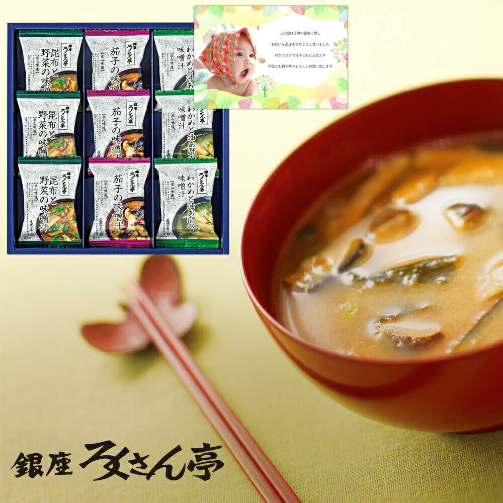 ●お届け日が「仏滅」にあたる場合がございます。「仏滅」を避けてお届けをご希望の場合には、お届け日をご指定いただくか、備考欄へご指示をお願いいたします。 ●お熨斗は「ご自宅届け」「複数ご注文」「仏事利用」の場合は【外熨斗】でお届けしております。 上記のご用途で【内熨斗】をご希望の場合は、備考欄にてご指示をお願いいたします。 商品によっては【内熨斗】のご指定ができないものもございます。予めご了承ください。 ●当店では請求書や納品書など、金額の分かる伝票はお品物に同梱しておりません。何卒ご安心下さい。 【商品について】素材と味付けにこだわって、香り立つ美味しさをそのままパックしました。どなたに贈っても喜ばれるフリーズドライのギフトです。●商品内容:わかめと油あげの味噌汁×3、きのこのお吸物ひき雲仕立×3、かきたま味噌汁赤だし仕立×3●箱サイズ(cm):25×26×3.2●宅配時の状態:常温●賞味期間(製造日より):360日●7大アレルゲン:卵、小麦 【商品のお届けについて】 通常は、ご注文の翌日より土日祝日を除く3営業日前後で出荷致します。 ●休日明けや繁忙期は混雑により、お品物の出荷が遅延することがございます。 【ご留意】 ●複数の商品をご注文頂いた場合、同時のご注文でも、商品により到着日が異なることがございます。 ●お届け先ご住所の入力間違いや、お届け先様長期ご不在等の理由で、お品物をお届けできない場合、弊店よりご注文者様へご連絡を致します。ご連絡が取れず運送会社での保管期間を過ぎた場合は、お品物はご注文者様へ自動転送となります。 ●宛先不明などにより商品を転送する場合、別途送料が発生いたします。 ------------------------価格帯から探す------------------------?¥1,000--------------------------¥1,001?¥3,000--------------------------¥3,001?¥5,000--------------------------¥5,001?¥8,000--------------------------¥8,001?¥10,000--------------------------¥10,001?¥20,000--------------------------¥20,001?-------------------------- [アイプレゼンツのお花にプラスギフト販売用途一覧] 友人の結婚祝い/両親へのお礼/結婚引出物/親戚への結婚内祝い、出産祝い/出産内祝い/新築祝い/母の日/父の日/敬老の日お中元/成人祝い/合格祝い/就職祝い/栄転祝い/誕生日プレゼント/開店祝い/昇進祝い/退職祝い/長寿のお祝い/お見舞い/退院祝い/回復祝い/復帰祝い/退官祝い/送別会/贈答品/定年退職 /賀寿/両親/父親/母親/祖母/祖父への長寿のお祝い/還暦/緑寿/古希/喜寿/傘寿/米寿/卒寿/白寿/百寿/結婚記念日/金婚式/銀婚式/医師や看護婦へのお礼/病気見舞い/全快祝い/開業祝い/当選祝い/上棟式/優勝/準優勝/記念日/お礼/会社の10周年/20周年/30周年/40周年/50周年/60周年/70周年/80周年/90周年/100周年/両親へのクリスマスプレゼント/バレンタインデー/ホワイトデー ●こちらの商品には、運賃、メッセージカード、のし、ラッピング、梱包資材、運送事故紛失補償などが含まれたパッケージ価格となっております。 ●ご注文のタイミングにより、注文確定後に在庫切れとなる場合がございます。予めご了承下さい。 ●商品リニューアルに伴いパッケージの改訂に加え内容量等の変更が生じる場合がございます。