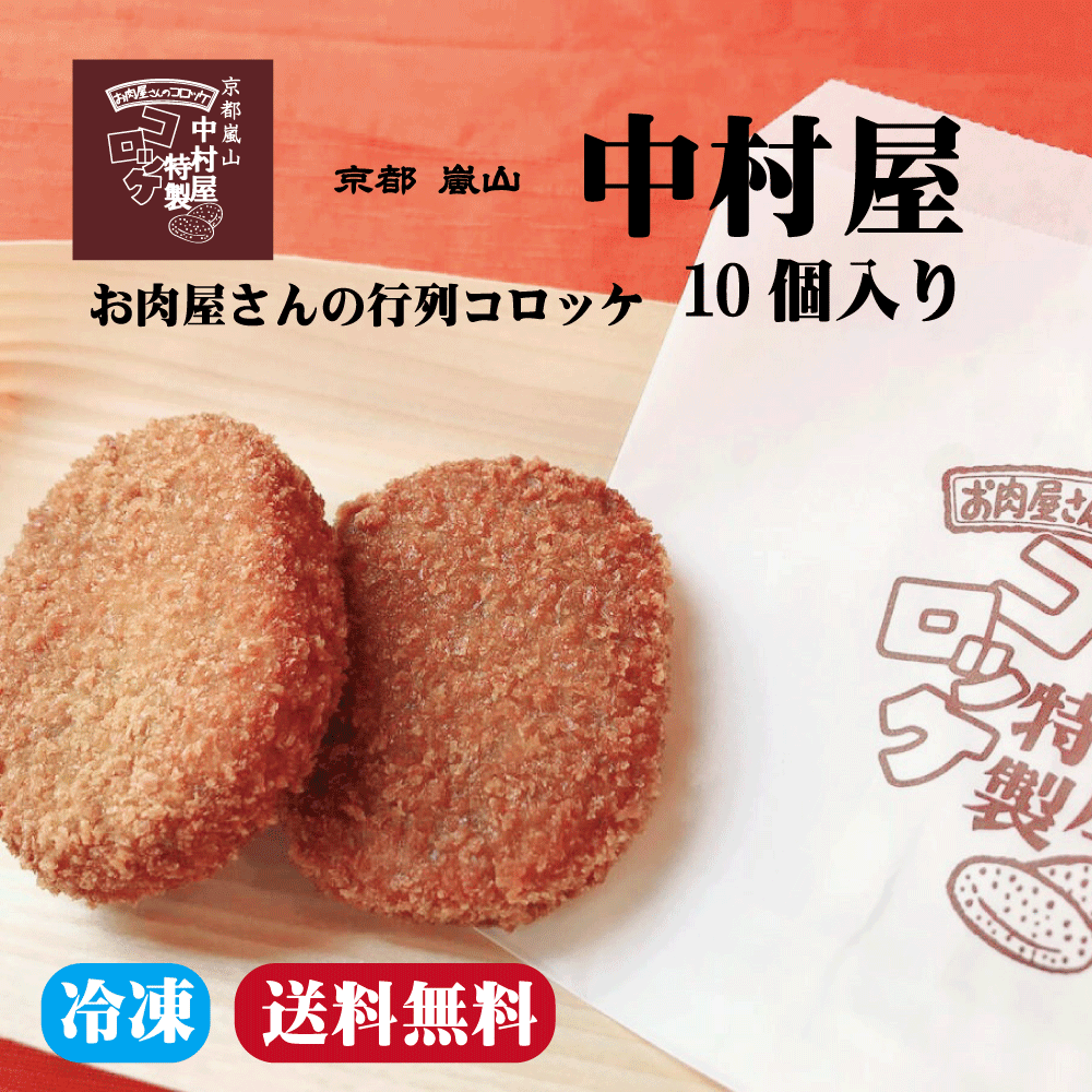 京都嵐山 中村屋のコロッケは創業58年変わらない味。お肉屋さんのコロッケとして名高い評価を受けています。冷凍コロッケ/老舗の味/京都嵐山コロッケ0021 京都嵐山 中村屋コロッケ10個入り(冷凍) 【行列の出来るコロッケ楽天初登場】京都嵐山/老舗の味/父の日/母の日/誕生日/還暦/プレゼント/グルメ/お土産/コロッケ/お買い得/お取り寄せ/保存食品/お見舞い
