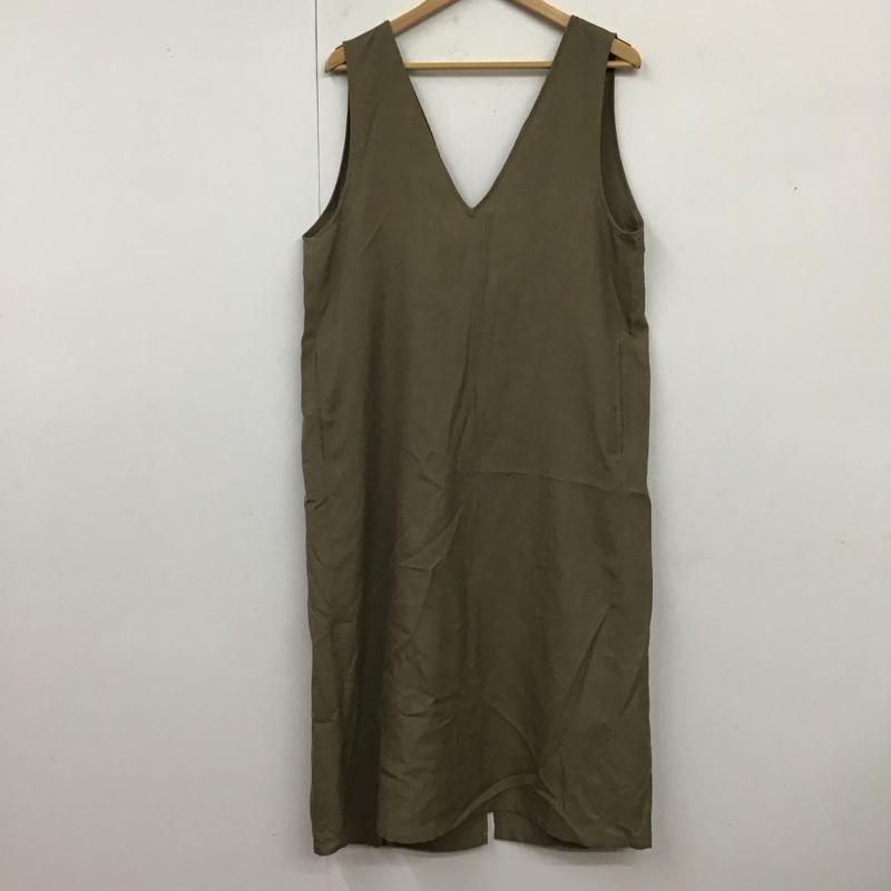 コムサイズム COMME CA ISM 【表記サイズ:表記無し】 カーキ / カーキ 無地COMME CA ISM コムサイズム ロングスカート ワンピース One-Piece Long Skirt 12-31OY04 ジャンパードレス Vネック 膝下丈【USED】【古着】【中古】10119258