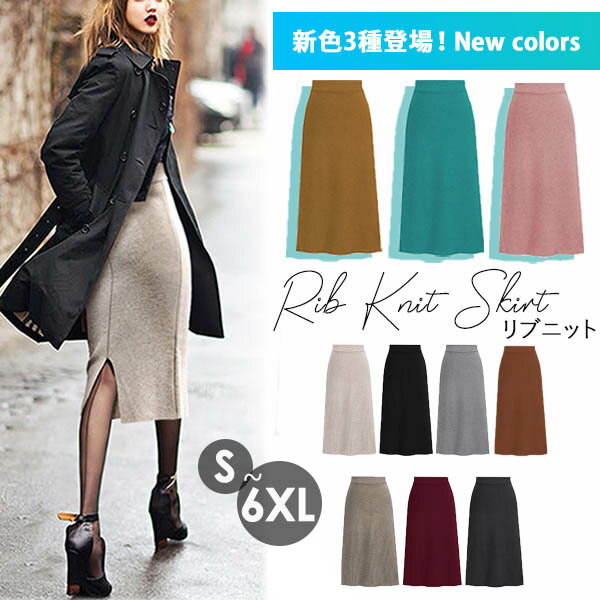秋冬コーデを格上げするリブニットスカート。スリット入りで歩きやすく、美脚効果も抜群。伸縮性のあるストレッチ素材でS~6XLまで幅広く対応。ニットスカート ロング リブニット タイトスカート スリット入り 秋冬 ストレッチ ウエストゴム ミディ丈 ロング丈 おしゃれ 暖かい 大きいサイズ S~6XL 体型カバー ブラック グレー ベージュ ブラウン ワイン カーキ ブルー ピンク マスタード レディース d1164s1s1l6