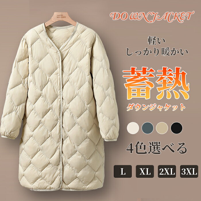 高密度ナイロン インナーダウン レディース ノーカラー ロング ライトダウン インナー きれいめ ダウンジャケット 薄手 ダウン80%L~3XL 高密度ナイロン インナーダウン レディース ノーカラー キルティング ロング ライトダウン インナー ダウン80% きれいめ ダウンジャケット 薄手 ロング ダウン コート ライト 長袖 可愛い vネック アウトドア ジャケット ポケッタブル 軽量 すっきり 秋服 TK-S