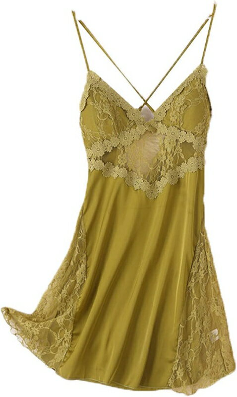 送料無料cheibear レディース ノースリーブ パジャマ ドレス シュミーズ ネグリジェ 膝丈 ナイトシャツ キャミソール ナイトガウン 緑 XS