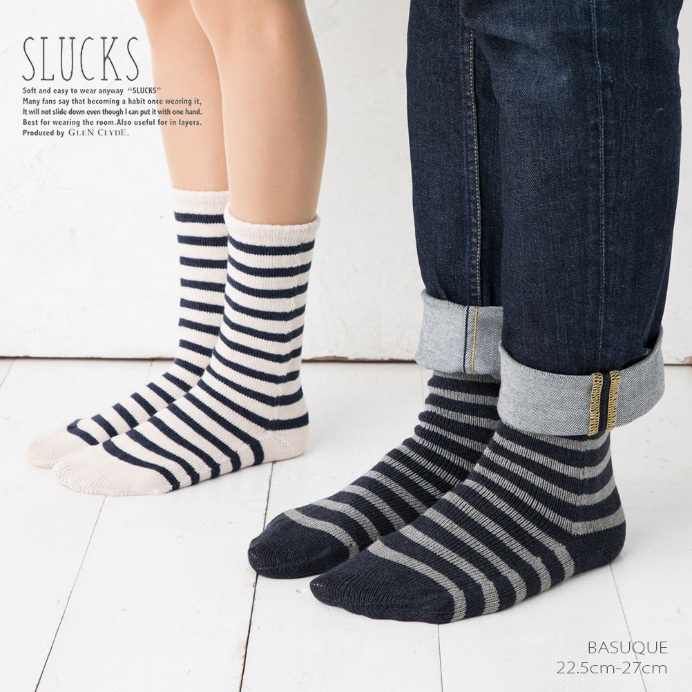 日本製ソックスブランド「SLUCKS」【2足までメール便/ネコポス対応】★SLUCKS/GLEN CLYDE スルックス/グレンクライド フリーサイズ 男女兼用BASQUE バスク ソックス 靴下【あす楽対応】