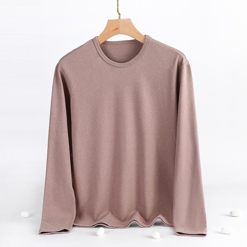 肌着 メンズ 男性用 長袖インナーシャツ あったかインナー 裏起毛 厚手 ポリエステル 無地 ラウンドネック XL 2XL 3XL 4XL 5XL 6XL 7XL 8XL ブラック カーキ 軍緑 鉄グレー 孔雀緑 大紅 紫 秋冬