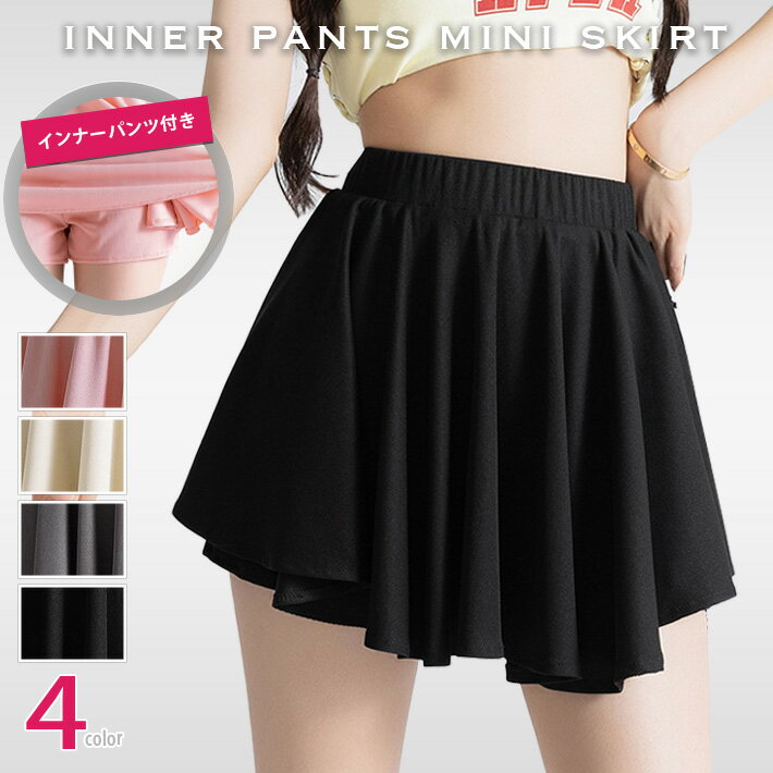 ストレッチ性あるリブカットソーで動きやすいチラリと見えるインナーパンツがスポーティテニスやゴルフ等のスポーツシーンに◎スコート ミニスカート フレアスカート【メール便で送料無料】【レビューを書いて10%OFFクーポンGET】インナーパンツ付き リブカットソー フレア スコート ミニスカート フレアスカート ショート丈 ミニ丈 フリル ストレッチ スポーツ ジム ヨガ テニス ダンス ウェア ハイウエスト 下 インナー 春夏 レディース