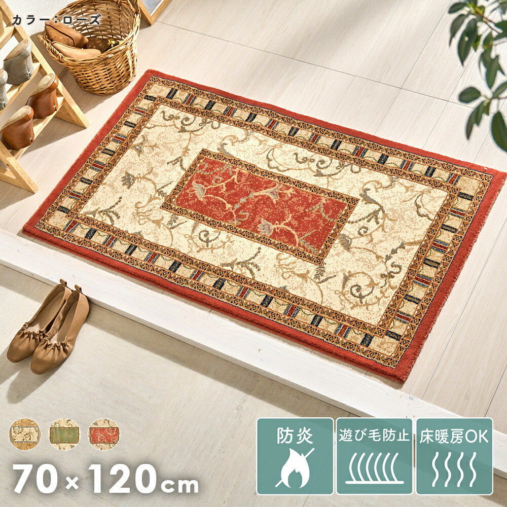 【送料無料】玄関マット 異国情緒あふれるエスニックな雰囲気のマット <べジー ベージュ>【 玄関マット 】ナチュラルテイスト マット ポリエステル 遊び毛防止 床暖房OK オールシーズン クラシカル 柄物 高級 おしゃれ かっこいい 柔らか 室内 軽量 ベージュ 70cm×120cm 日本製