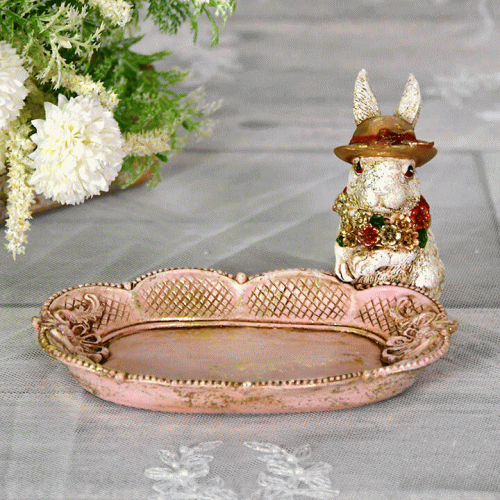 アンティーク調のラビットトレイミニ ラビット トレー(ピンク)トレイ ウサギ うさぎ ラビット イースター オブジェ 小物入れ インテリア アンティーク クラシック ギフト プレゼント