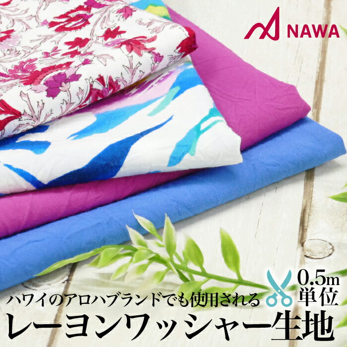 ハワイのアロハブランドでも使用されているレーヨンワッシャー 小物からアロハシャツなど幅広く使えるオリジナルファブリックNAWA 日本製 レーヨンワッシャー アロハ生地 アロハシャツ 生地カット 生地売り 50cm単位 5mまで 夏 爽やか 涼しげ アクア/ブルー/グレープ/レッド レーヨン100% 生地幅112cm