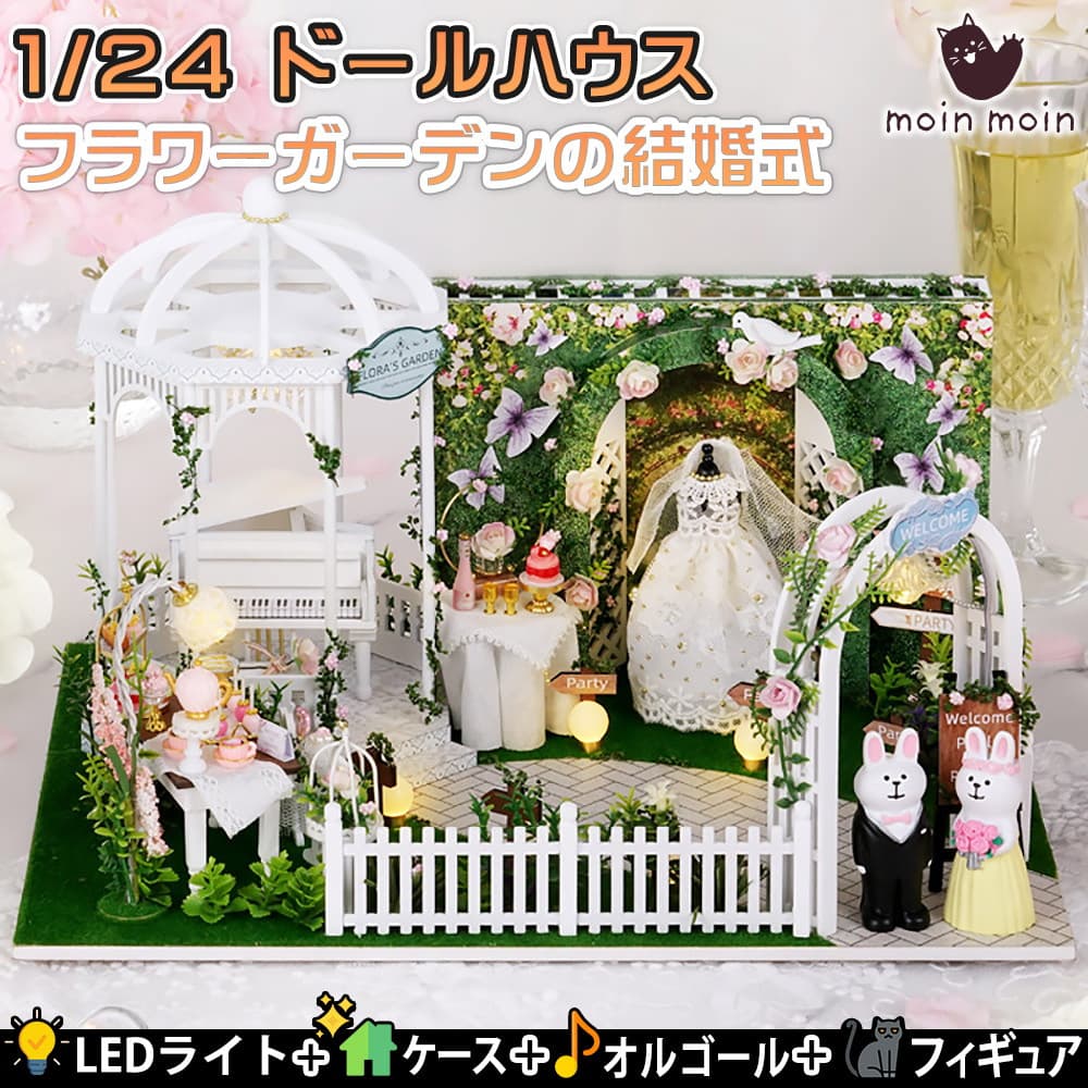 送料無料 ドールハウス ミニチュア キット DIY 木製 家具 1/24 オルゴール アクリルケース DIY おもちゃ 子供 模型 手芸 ハンドメイド 手づくり 建物 ドー最短当日出荷◆1/24 ドールハウス ミニチュア 手作りキットセット フラワーガーデンの結婚式 蝶 ちょうちょ 兔 兎 チャペル 式場 ウェディング | LEDライト+アクリルケース+うさぎ 新郎新婦 フィギュア+オルゴール (ウェディングマーチ)