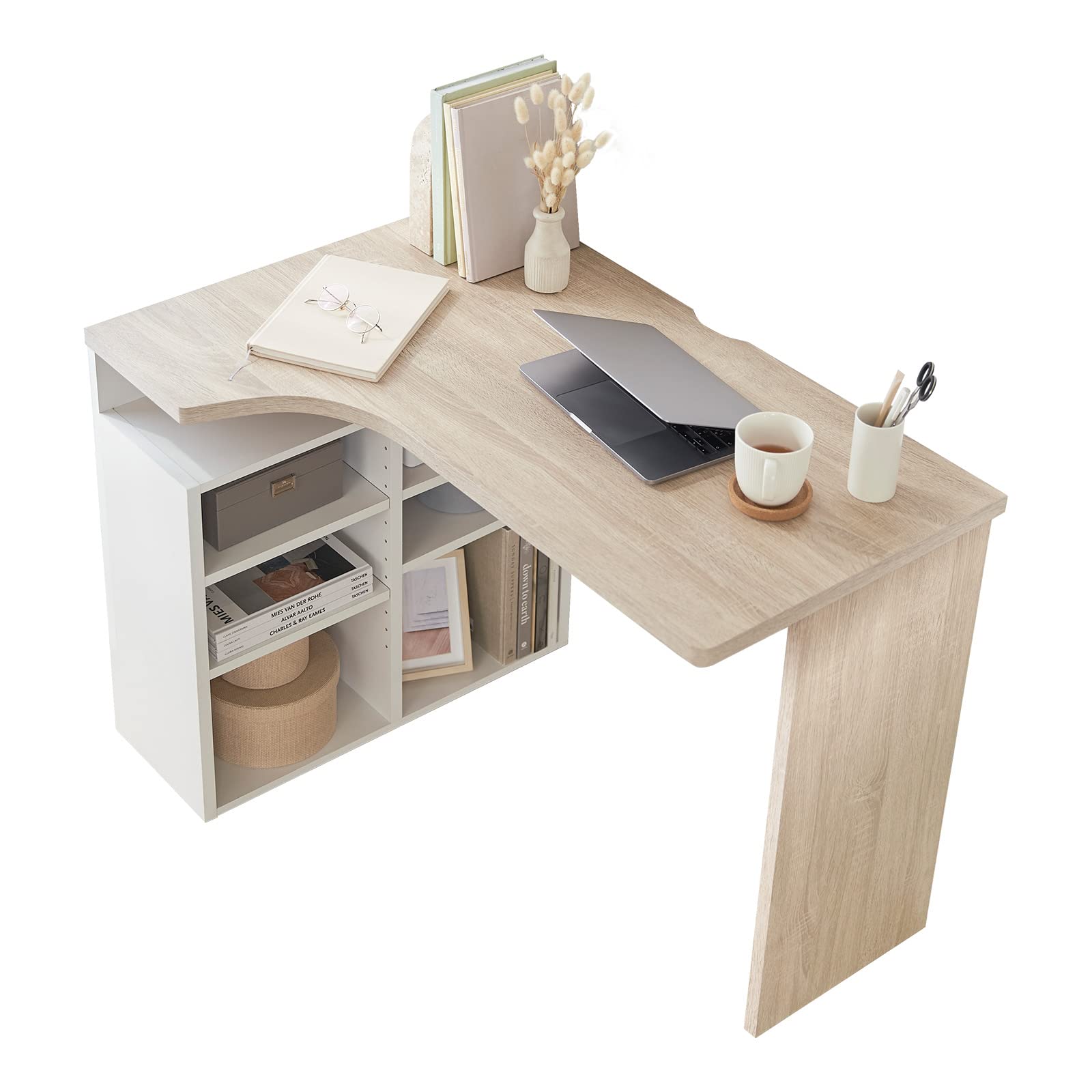 ロウヤ パソコンデスク 学習机 勉強机 L字 シンプル たっぷり収納 ホワイト オーク
