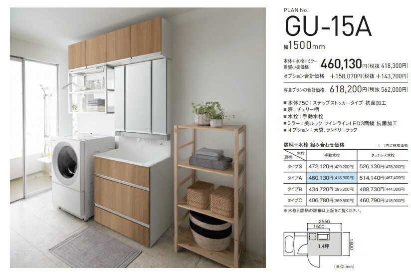 プランの1例です。御客様プランもお見積もり致します。【GU-15Aプラン】パナソニック洗面ドレッサー「ウツクシーズ」 W=75cm 手動水栓+扉柄タイプAチェリー柄、ミラーは、美ルックツインラインLED3面鏡 ¥507,650-