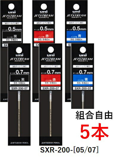 SXR-200(0.5mm 0.7mm / 黒 赤 青)の替え芯を自由に組み合わせて購入できるまとめてお買い得なセット販売5本です。【メール便送料無料】 ジェットストリーム プライム 替え芯 SXR-200 5本セット 0.5mm 0.7mm 替芯 レフィル リフィル ボールペン SXR-200-05 SXR-200-07 三菱鉛筆 Uni ユニ 黒 赤 青 4C芯 D1規格 3機能ペン 機能ペンシル 多色多機能用 ペン 文房具 三菱 prime 文房具 事務