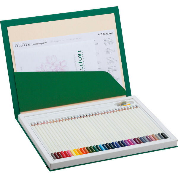 トンボ鉛筆 色辞典36色セレクトセット CI-RSA36C 30年続く、トンボ鉛筆の色鉛筆ブランド・色辞典(IROJITEN)は自然の色合いを揃えた色鉛筆シリーズ。 自然な色合いを活かしながら、色鉛筆画をはじめてみたい方・初心者の方のつまずきポイントを解消できる仕様(グラデーションがつくりやすく、自然物を描くときにぴったり)。 実用的なセレクトセットです。 【特長】 人気モチーフの花、動物、山の風景などを描くシーンに適した、色辞典ならではの自然から集めたオリジナルの36色セット。 現行色のラインナップに無い色味を補完し、より表現を広げる新色10色をセットに。 色鉛筆画を始めるに最適な色鉛筆。基本テクニックや混色技法などを解説したミニ活用辞典付。 サイズ 242mm×322mm×24mm 軸の種類 丸軸 軸径 8mm ブランド IROJITEN(色辞典) セット色 【新色10色】 緋色(ひいろ)、卵色(たまごいろ)、木賊色(とくさいろ)、深海(しんかい)、山葡萄(やまぶどう)、アネモネ、牡丹色(ぼたんいろ)、小豆色(あずきいろ)、烏賊の墨色(いかのすみいろ)、銀鼠(ぎんねずみ) 臙脂色(えんじいろ)、鶯色(うぐいすいろ)、青褐(あおかち)、紫根(しこん)、土竜色(もぐらいろ)、李色(すももいろ)、蘇芳色(すおういろ)、枯竹色(かれたけいろ)、仙人掌(さぼてん)、針樅色(はりもみい)、濃藍(こいあい)、緑青(ろくしょう)、二藍(ふたあい) 子鹿色(こじかいろ)、渋紙色(しぶかみいろ)、釣鐘草(つりがねそう)、珊瑚色(さんごいろ)、水仙(すいせん)、ライラック、天色(あまいろ)、チェリー、蜜柑色(みかんいろ)、蒲公英(たんぽぽ)、ラピスラズリ、菖蒲色(あやめいろ)、黒(くろ)