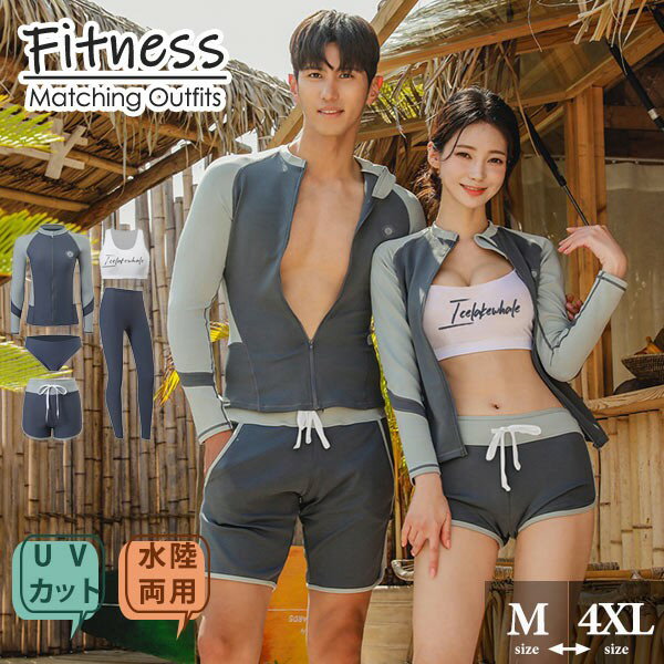 足にまとわりつかない!にぴったり動きやすいショー水着 上下セット レディース 水着 体型カバー メンズ ラッシュガード 長袖 トップス ボ セットアップ スイムウェア 3点セット 男性 女性 5点セット 紫外線 UV対策 日焼け防止 ペアルック 水陸両用 バックシャン おしゃれ ジム プール 温泉 海 夏 送料無料