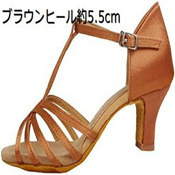 社交ダンスシューズ レディース 室内用 女性サンダル Tストラップ オープントゥ モダン ラテン兼用社交ダンスシューズ ハイヒール約7.5cm 大きいサイズ ダンスシューズ レディース靴 演出 発表会 黒 イベント ブラウン