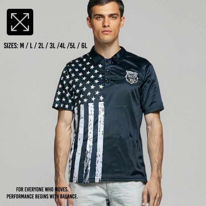 着るだけで、ゴルフがスタイリッシュに変わる。【M~6L対応】アメリカ柄 ゴルフポロシャツ メンズ 半袖 吸汗速乾 ストレッチ おしゃれ 大きいサイズ UVカット 通気性 快適 花柄 総柄 ゴルフウェア スポーツウェア 春 夏 秋 かっこいい シンプル 40代 50代 60代 ユニセックス ペアルック対応
