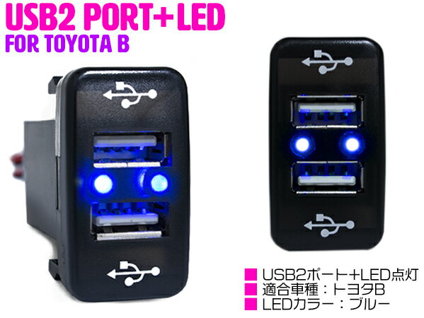 【デザインF】【トヨタB】DC12V専用 5V/2.1A 純正スイッチホールに付け替えるだけ!LED付き USB2ポート 充電用 USBスイッチ トヨタB ハリアー ACU/GSU/MCU30系 ACU/MCU/SXU10系 ピクシスエポック LA300/310S ピクシススペース L575/585A ファンカーゴ NCP20系 プラッツ NCP/SCP10系 【USB増設 スマートフォン タブレット スイッチ スイッチホールカバー】