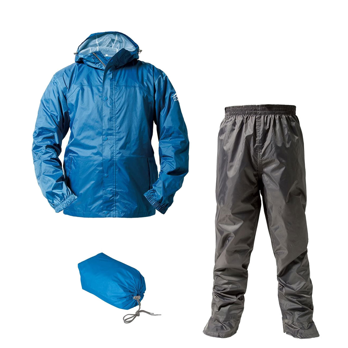 ■バッグも濡らさない軽量透湿レインスーツ ●フードを簡単収納ワイドロールアップ 着たままでもフードを丸めてワイドカバーで固定。 バタつき防止2WAYフード。 ●リュックINジャケット 背中は大型マチ付き仕様。 隠しファスナーを開けるとリュックを丸ごと収納可能。 豪富から荷物をしっかりガード。 ●裾部アーチカバー+調整テープ ひも靴等、靴の隙間からの泥や水の浸入を防止。 足首調整テープでしっかり固定しバタつきや裾上がりを軽減 ●防水収納バッグ 持ち運び・保管に便利なコンパクト防水収納バッグ。 ■素材・仕様 ・素材 ポリエステル/ウレタン透湿コーティング ・耐水圧 10,000mmH2O ・透湿度 2,000g/m2-24h