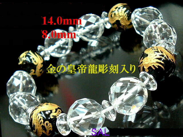 【製作元直販】【特大】【金の皇帝龍】【財運・仕事運】【超高級天然ブラックオニキス&高級天然クリスタル(本水晶) 2025年開運ブレスレット】(O 14.0mm/C 14.0mm64F・8.0mm)Lサイズ【当サロンオリジナル】【赤字大処分】 【宅配送料無料】【楽ギフ_包装】