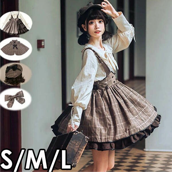 S-L ジャンパースカート レディース スカート ジャンスカ ロリータ ゴスロリジャンパースカート レディース スカート ジャンスカ ロリータ ゴスロリ サスペンダースカート コスチューム 衣装 可愛い かわいい 探偵 チェック柄 フリル 仮装 パーティ 髪飾り イベント ブラウス追加可 アクセサリー追加可 ガーリー ハロウィン ブラウン dd171t2t2g5