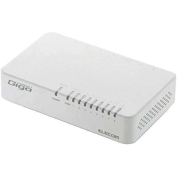 ■省電力機能で最大約81%節電! 音が静かなファンレス設計で、ループ検知機能も搭載した1000BASE-T対応の電源内蔵プラスチック筐体8ポートハブ。■非通信時のポートへの電力供給をカットする省電力機能で、最大約81%節電※が可能な1000BASE-T対応の電源内蔵プラスチック筐体8ポートハブです。 ※計測は、負荷機からハブへデータを転送し、全ポート通信・非通信時の1分後の電力を計測比較した場合。 ■ループ検知機能を搭載し、ネットワーク運用に影響を及ぼすネットワークループ発生をお知らせします。LEDランプの点滅でお知らせし、すみやかなネットワーク障害の解消を促します。 ■ファンレス設計により、寝室や事務所などの静粛性が求められる場所への導入にも最適です。また、可動部分が減ることにより、高信頼性・高耐久性を実現しています。 ■メイン基板に電解コンデンサーを使用していないため、長寿命設計を実現しています。 ■AC電源ケーブルにトラッキング対策が施され、長期間設置した場合でもホコリによるトラッキング現象を防止します。 ■小型デザインで設置場所を選ばず、水平設置のほか、磁石によるスチール製のデスクや壁面に容易に取り付け、本体背面の壁掛け用ホールを使った壁掛けも可能です。■接続方式:1000BASE-T/100BASE-T×/10BASE-T■ネットワークタイプ:IEEE802.3ab/IEEE802.3u/IEEE802.3■スイッチング方式:ストア&フォワード■バッファメモリー:192Kbytes(各ポートに動的割当て)■フローコントロール制御:IEEE802.3×(フルデュプレックス時),バックプレッシャー(ハーフデュプレックス時)■スイッチファブリック:16.0Gbps■最大パケット転送能力:12.0Mpps■フィルタリング速度:1,488,000パケット/秒(1000Mbps),148,800パケット/秒(100Mbps),14,880パケット/秒(10Mbps)■MACアドレス登録数:4,096件(全ポート合計)■ポート数:8ポート■AutoMDI/MDI-×:対応■オートネゴシエーション:対応(1000/100/10Mbps)■コネクタ形状:RJ-45 ×8■適合ケーブル:10BASE-T:UTPカテゴリー3以上,100BASE-T×:UTPカテゴリー5以上,1000BASE-T:UTPカテゴリー5e以上■ノンブロッキング:対応■ジャンボフレーム:対応 (9Kbytes)■ループ検知機能:ループ検知■MTBF:676,000時間■EAP透過機能:対応■BPDU透過機能:対応■入力電圧:AC100~240V±10% 50/60Hz■消費電力(定格):最大5.0W■発熱量:最大約18.0kJ/h■省電力機能:らくらく節電E(IEEE 802.3az)対応■エネルギー消費効率:0.6W/Gbps■最大実効伝送速度:8.0Gbps■外形寸法(幅×奥行き×高さ):約180.2×約86.5×約34.0mm(本体のみ)■質量:約245g■筐体材質(カラー):プラスチック(ホワイト)■動作時環境条件:温度:0℃~40℃ 湿度:10%~90%(ただし結露なきこと)■保管時環境条件:温度:-40℃~70℃ 湿度:5%~90%(ただし結露なきこと)■設置方向:水平設置、壁掛け、マグネット■壁掛け用穴:あり■保証期間:1年■法令対応:EU RoHS指令準拠■適合規格:VCCI ClassB■付属品:専用AC電源ケーブル(2ピン、約1.8m):1本、安全にお使いいただくために:1枚※ゴム足・マグネットは出荷時に製品本体に取り付けてありますエレコムダイレクトショップ